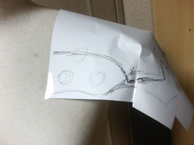 とりあえず大まかに形とり。紙を切って貼ってを繰り返して形にいていきます。